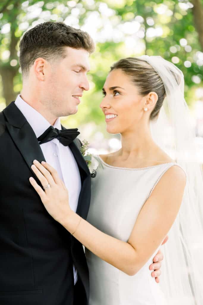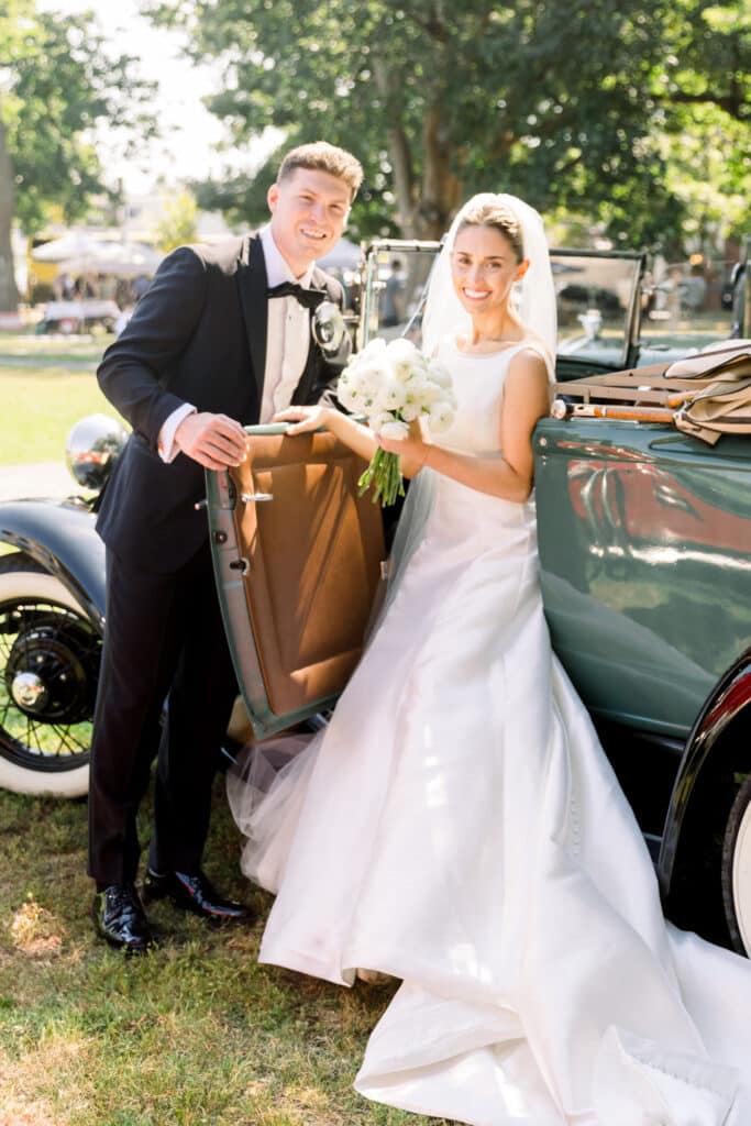 Once they were both dressed and ready, we made our way across the street to the nearby park for portraits. The September afternoon was perfectly mild, with soft light filtering through the trees, and the park offered just the right amount of space for us to capture intimate moments between Emily and Jason. What made this even more magical, however, was the surprise element of the antique automobile fair happening right across the way. Who could resist a vintage car photo op?