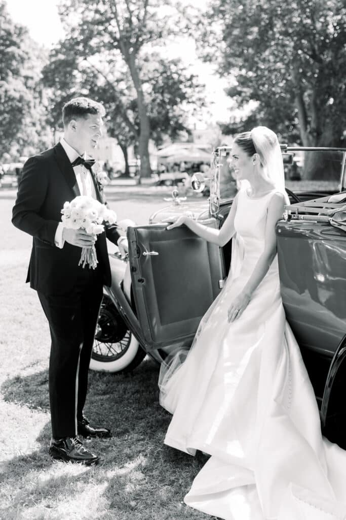 Not only did Emily and Jason look absolutely stunning in front of the antique vehicles, but the car owners were incredibly gracious and allowed them to hop in for a few shots. The scene felt like something out of a classic romance movie—elegant, nostalgic, and completely unforgettable.