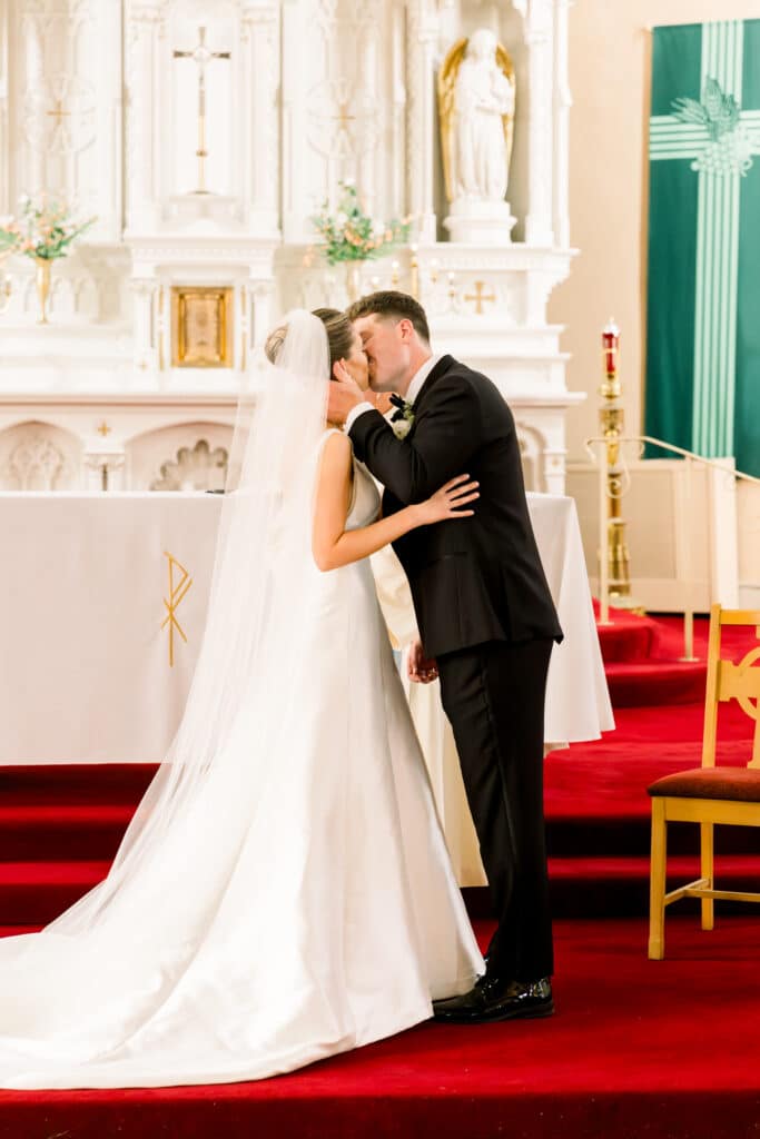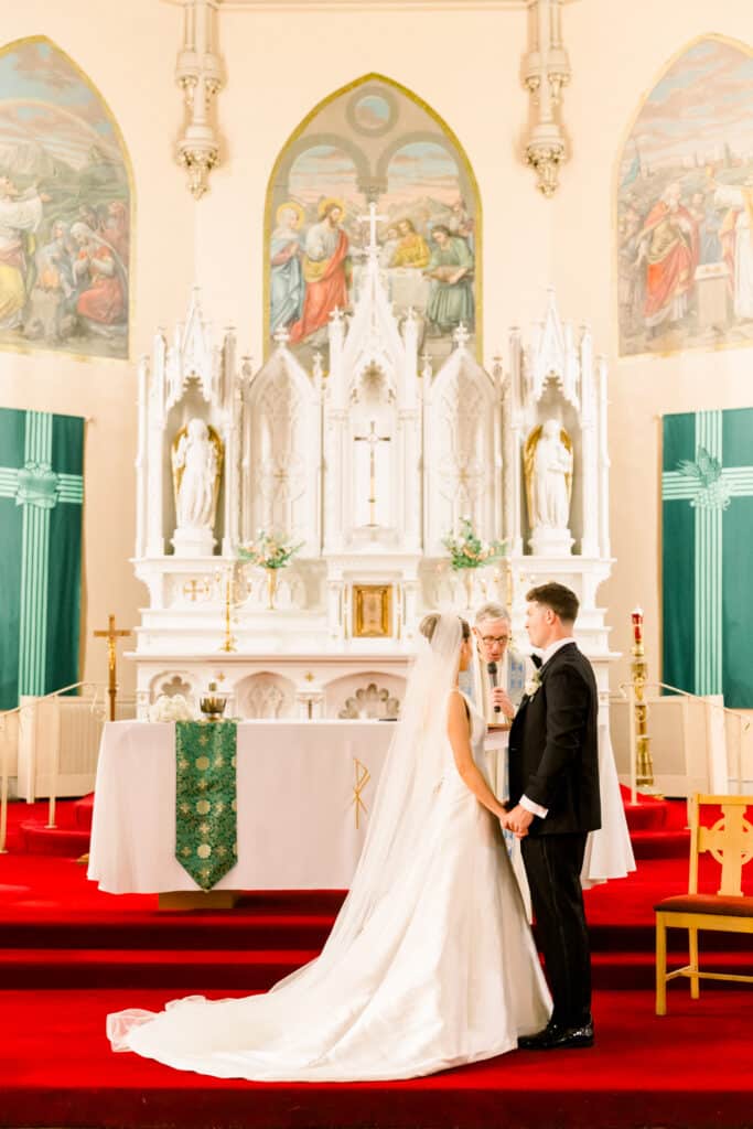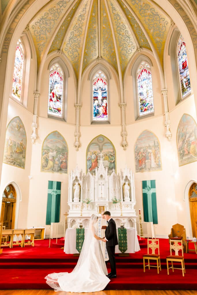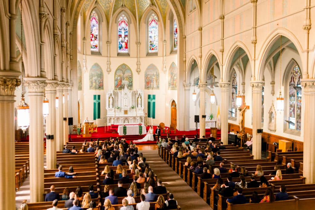 After we wrapped up the portrait session, it was time for the main event: St. James Church. The air was thick with emotion as Emily walked down the aisle, the soft strains of the organ filling the space. The church, with its high arches and beautiful stained glass windows, created the perfect atmosphere for this sacred moment.