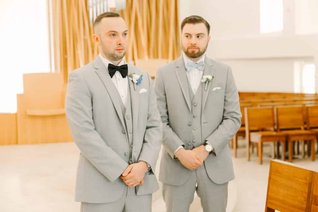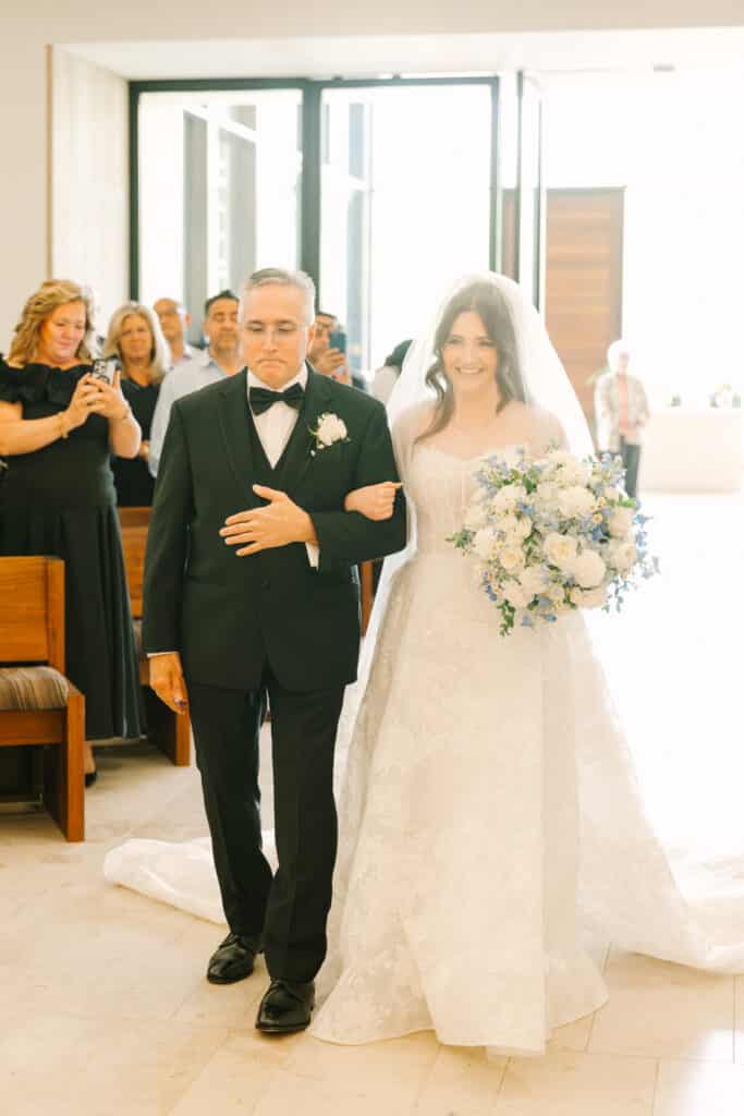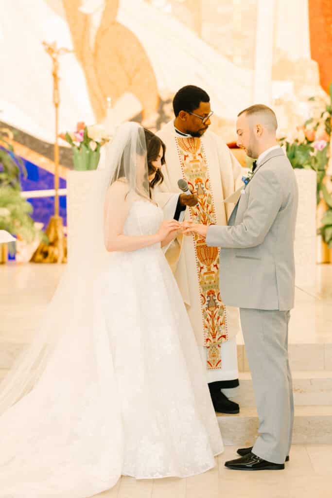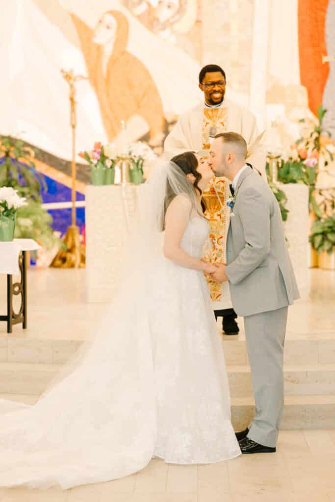 Nicole and Mike’s love story began right on Sacred Heart’s campus. They met as students often attending services together at the Chapel of the Holy Spirit. After graduation, they built a life and love that only grew stronger with time. Returning to Sacred Heart University to exchange vows was a full-circle moment, bringing them back to where their story began. Their ceremony inside the Chapel of the Holy Spirit was breathtaking. Standing in front of the sparkling mosaic, they exchanged sacred vows surrounded by their closest family and friends. The joy in the room was undeniable as they stepped into marriage in the same chapel that had witnessed their love story blossom years earlier.