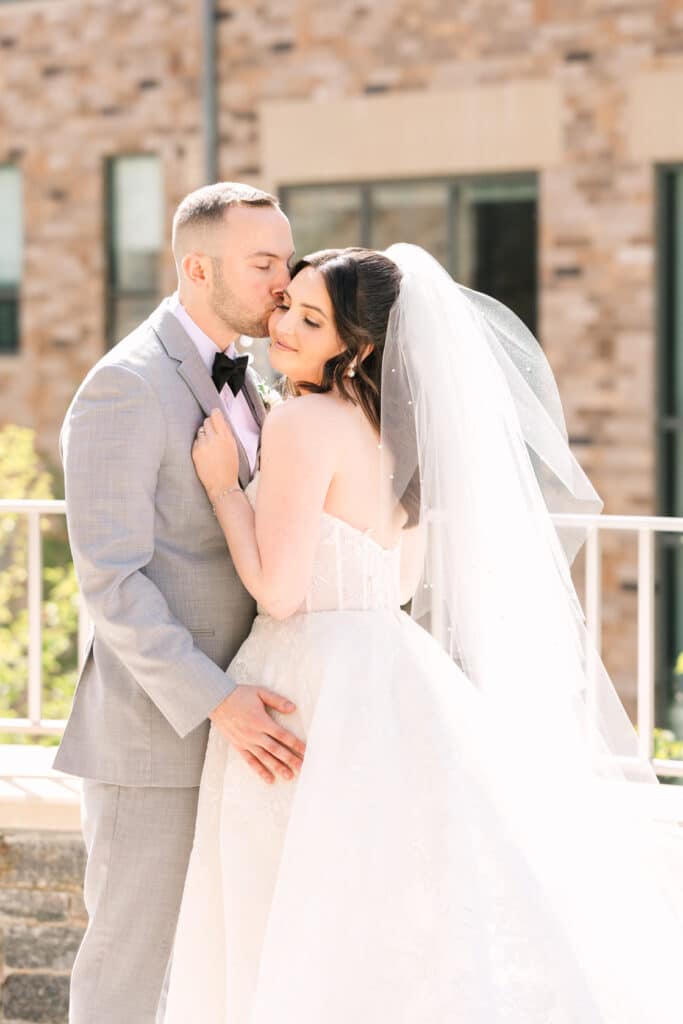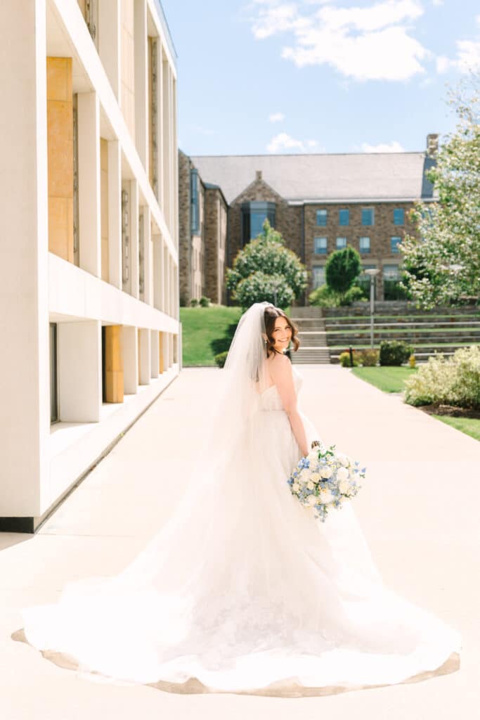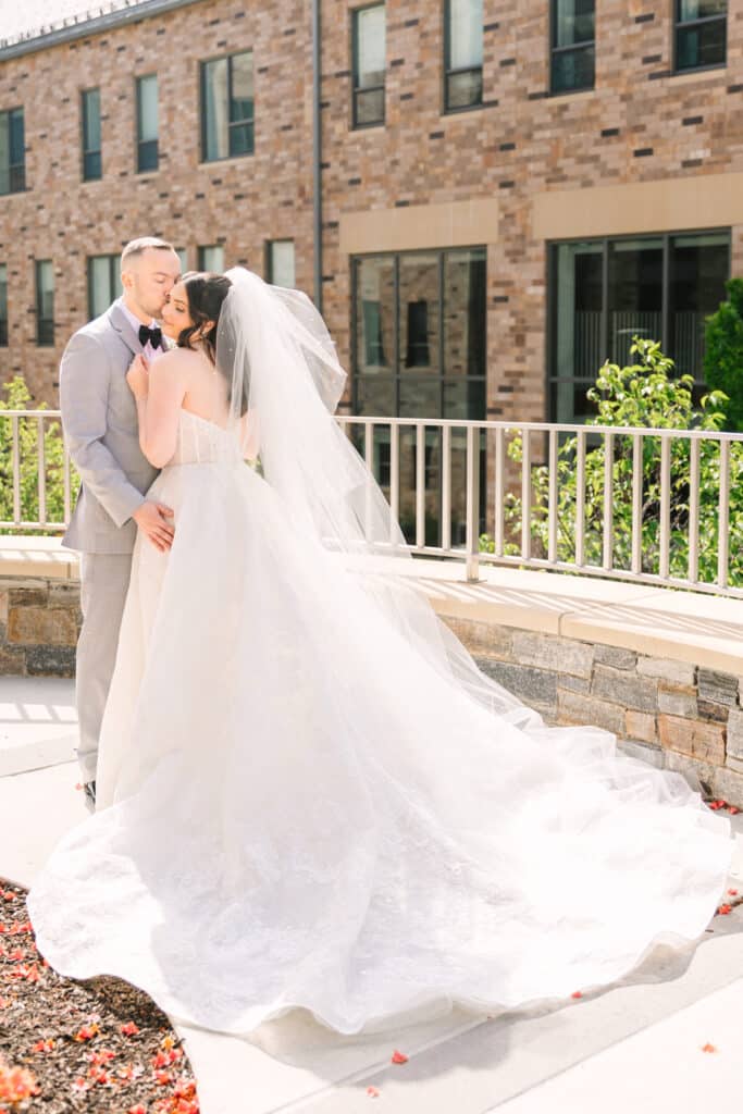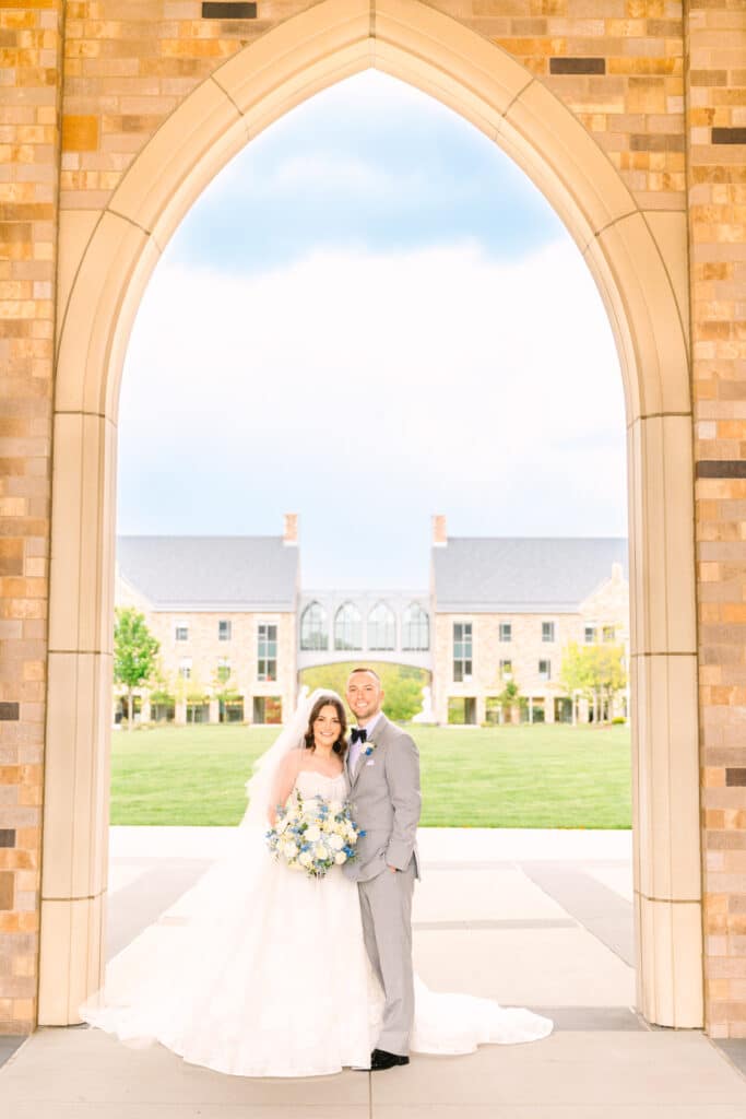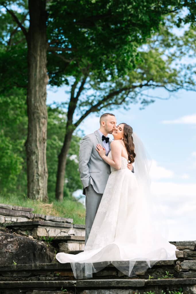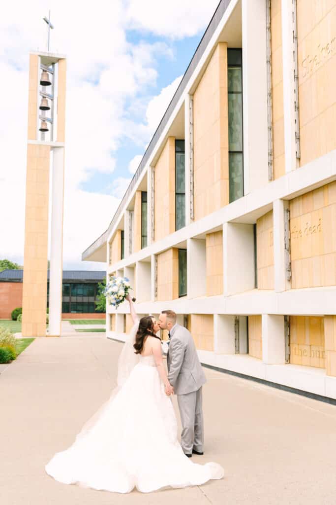 This Sacred Heart University wedding was a dream to capture. Photographing Nicole and Mike in such a personal and meaningful location added an extra layer of beauty and nostalgia to every moment. I wanted their images to feel sentimental and full of the joy that comes with returning to a place so deeply tied to their love story. Sacred Heart’s stunning architecture and serene atmosphere created the perfect canvas. One of my favorite spots was the grass covered stairs tucked behind the chapel, where we captured their iconic wedding party portraits. The clean lines of the stone provided a striking backdrop, while the staggered levels of the stairs made the portraits not only visually engaging but also dynamic—perfectly reflecting the energy and connection of the couple and their closest friends.