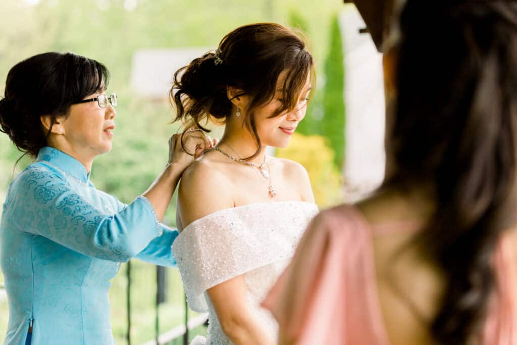 My approach to capturing Chris and Thao’s Zorvino Vineyards wedding photos was to blend elegant editorial portraits with heartfelt documentary storytelling. I focused on crafting timeless, romantic portraits that captured their deep connection while also being fully present to document the candid, in-between moments—the joyful laughter, tearful embraces, and quiet glances they shared. With Zorvino Vineyards in full spring bloom, I made sure to showcase the vibrant colors of their day, from the soft pink tones of Thao’s bouquet to the lush greens of the vineyard. Every image was a reflection of the warmth, energy, and love that surrounded them.